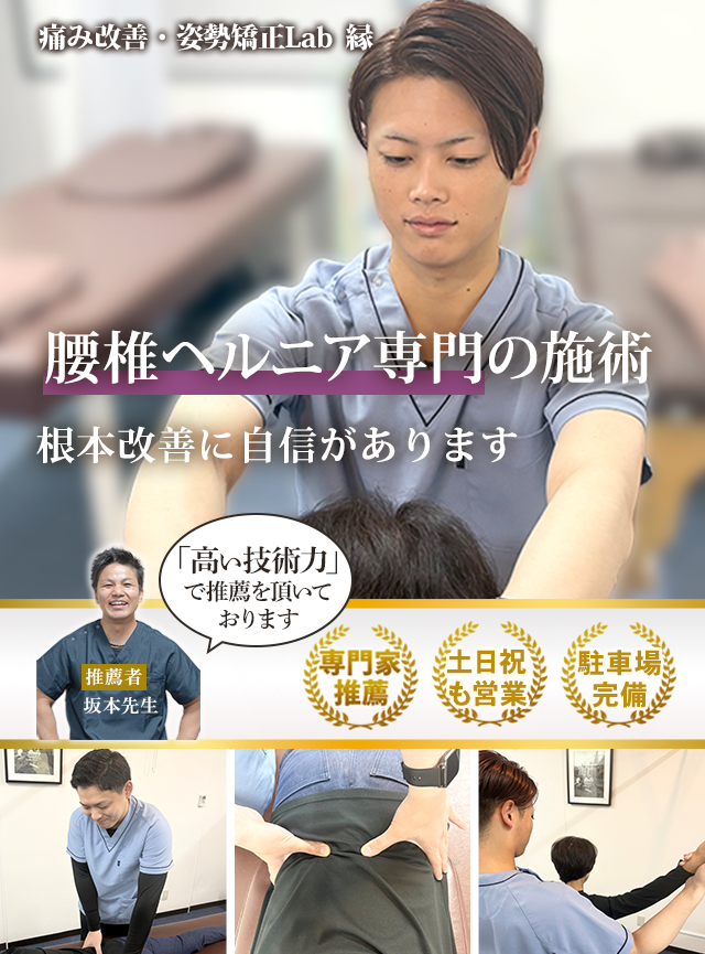 何をしても良くならなかった腰椎ヘルニアを改善に導くだけでなく、再発防止もサポートいたします。